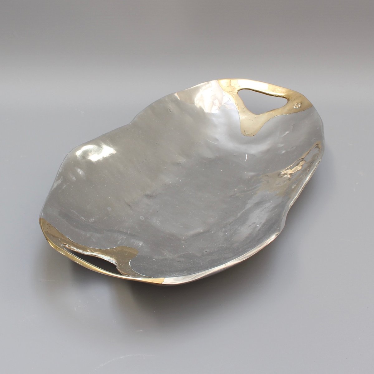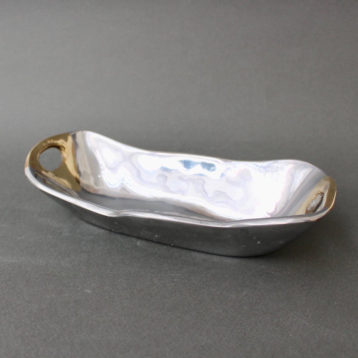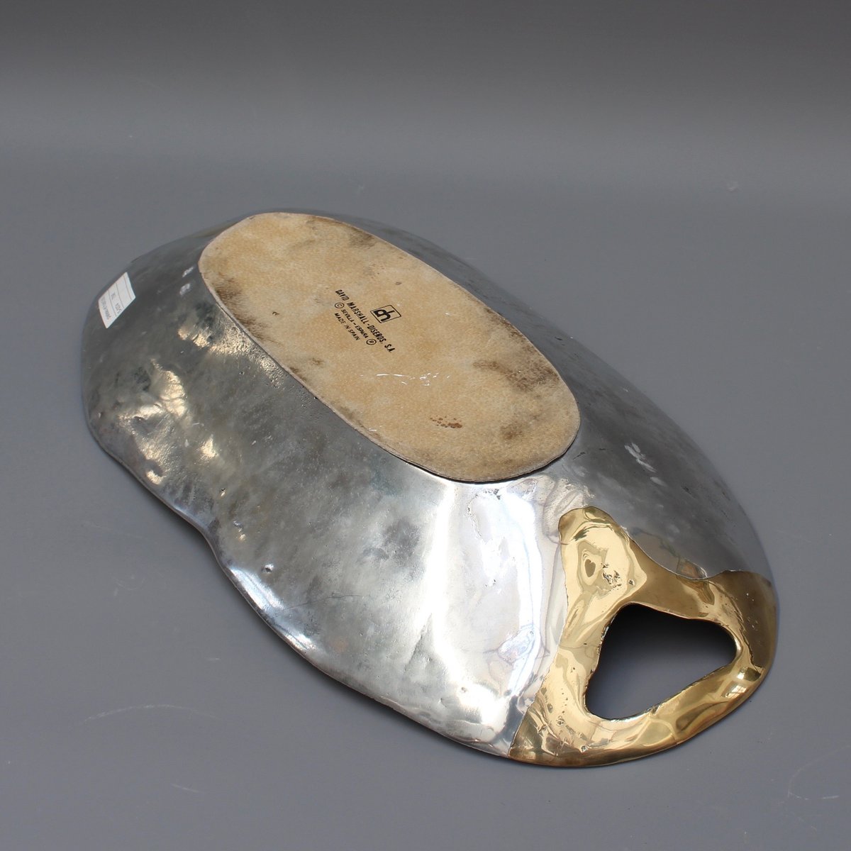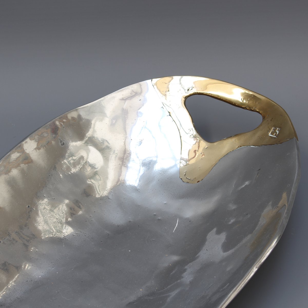Bandeja de forma irregular fabricada en aluminio y laton.